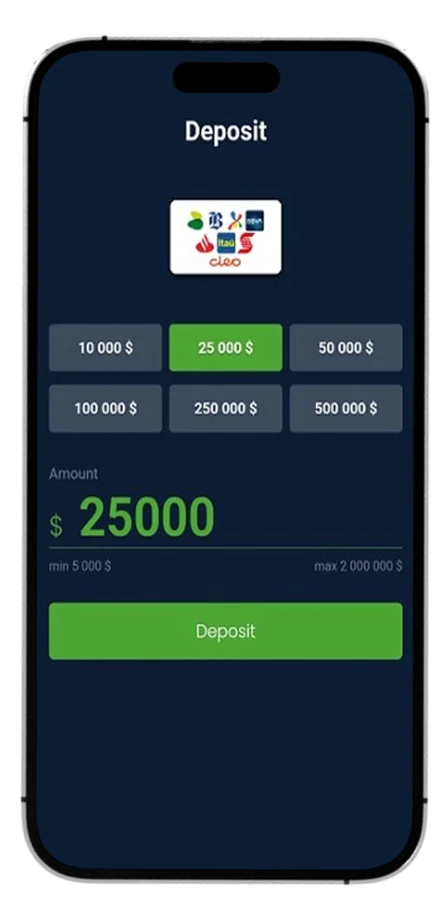 - Odprite blagajno: Pojdite v razdelek »Cashier« in izberite možnost »Deposit«;